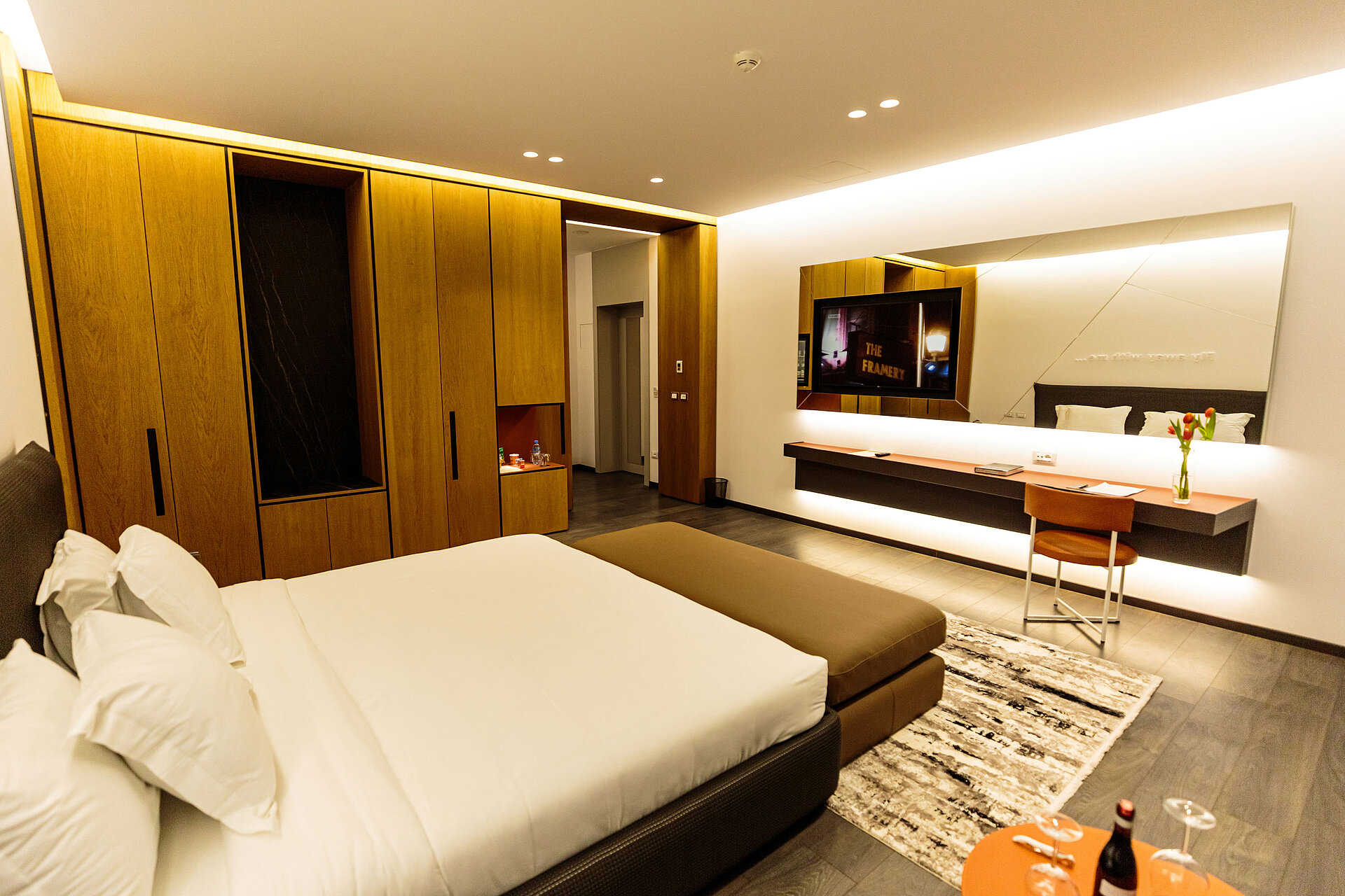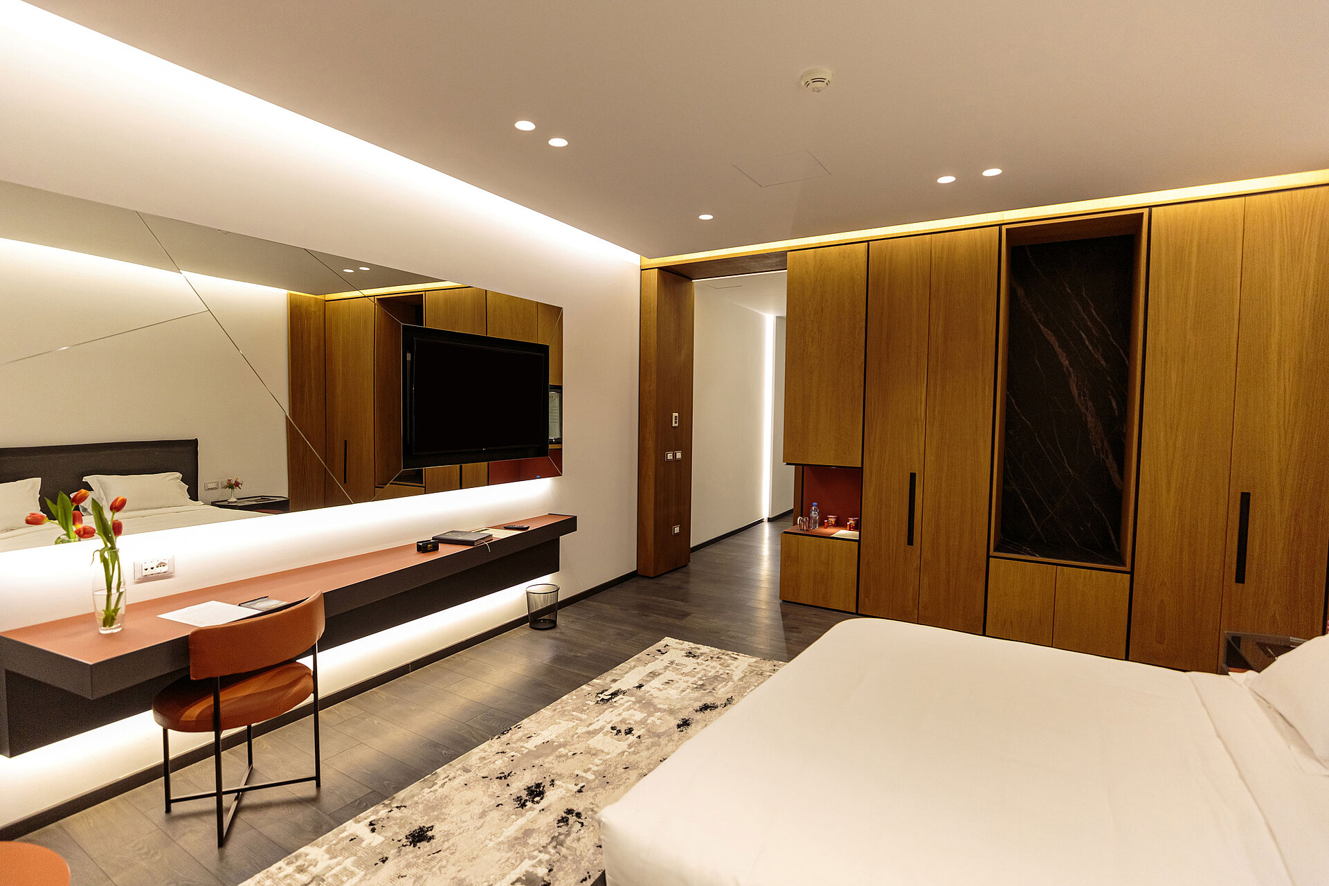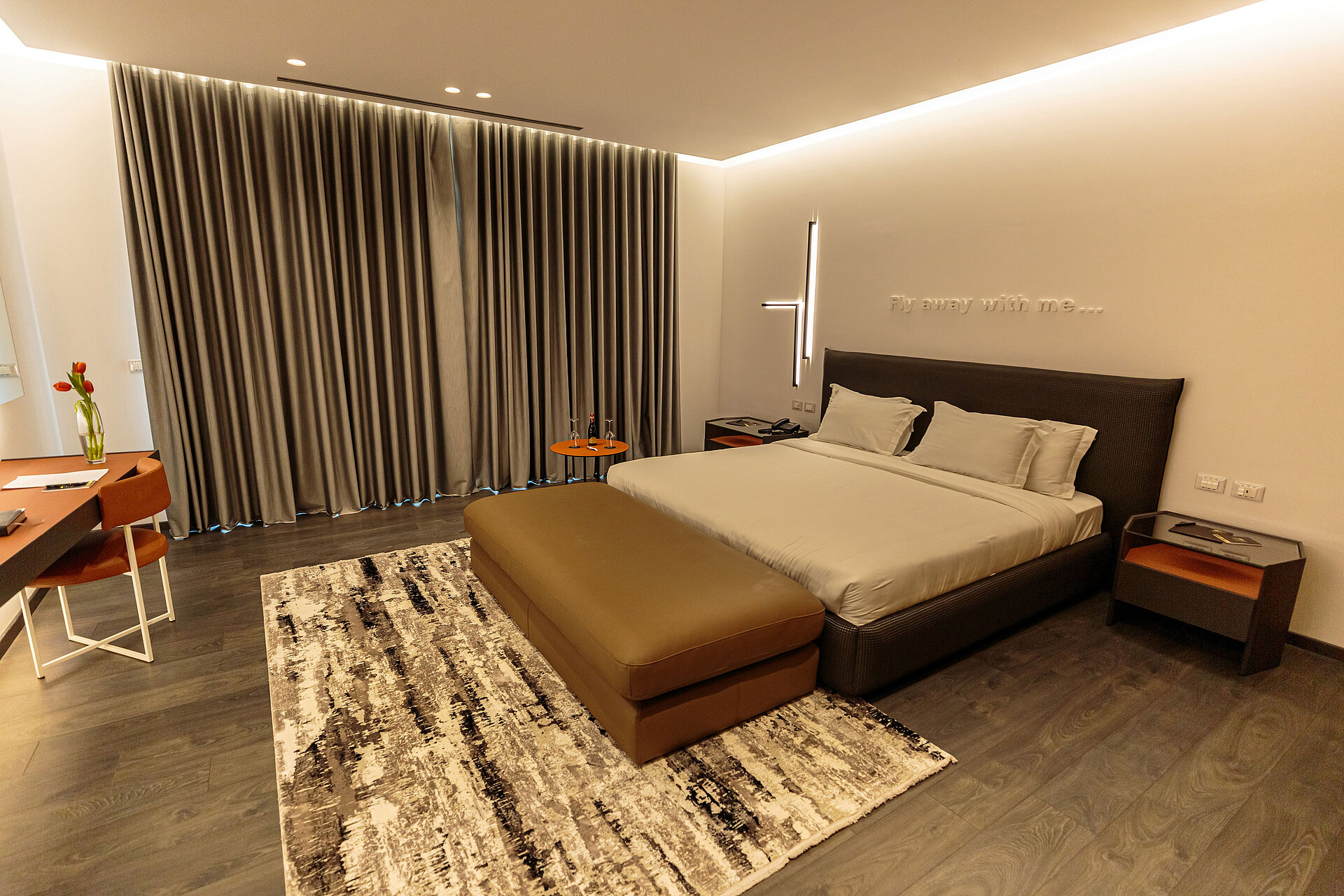 The resort has its own pebble beach, which you use exclusively as a guest of the hotel. In addition, there are four pools, sophisticated restaurants and bars, a spa centre and many other highlights. In a total of 8 different suite categories, all those who strive for that certain something extra will find their ideal accommodation in Vlora. Each category is titled either "Standard" or "Deluxe". The distinction here lies in the location of the hotel room, as the Deluxe rooms are on higher floors and have a better view from the balcony.