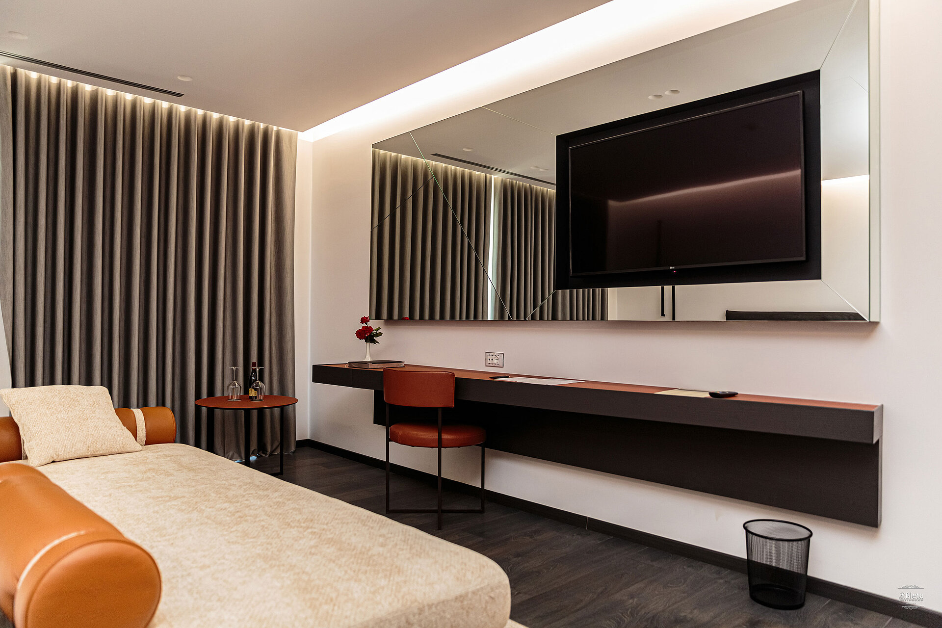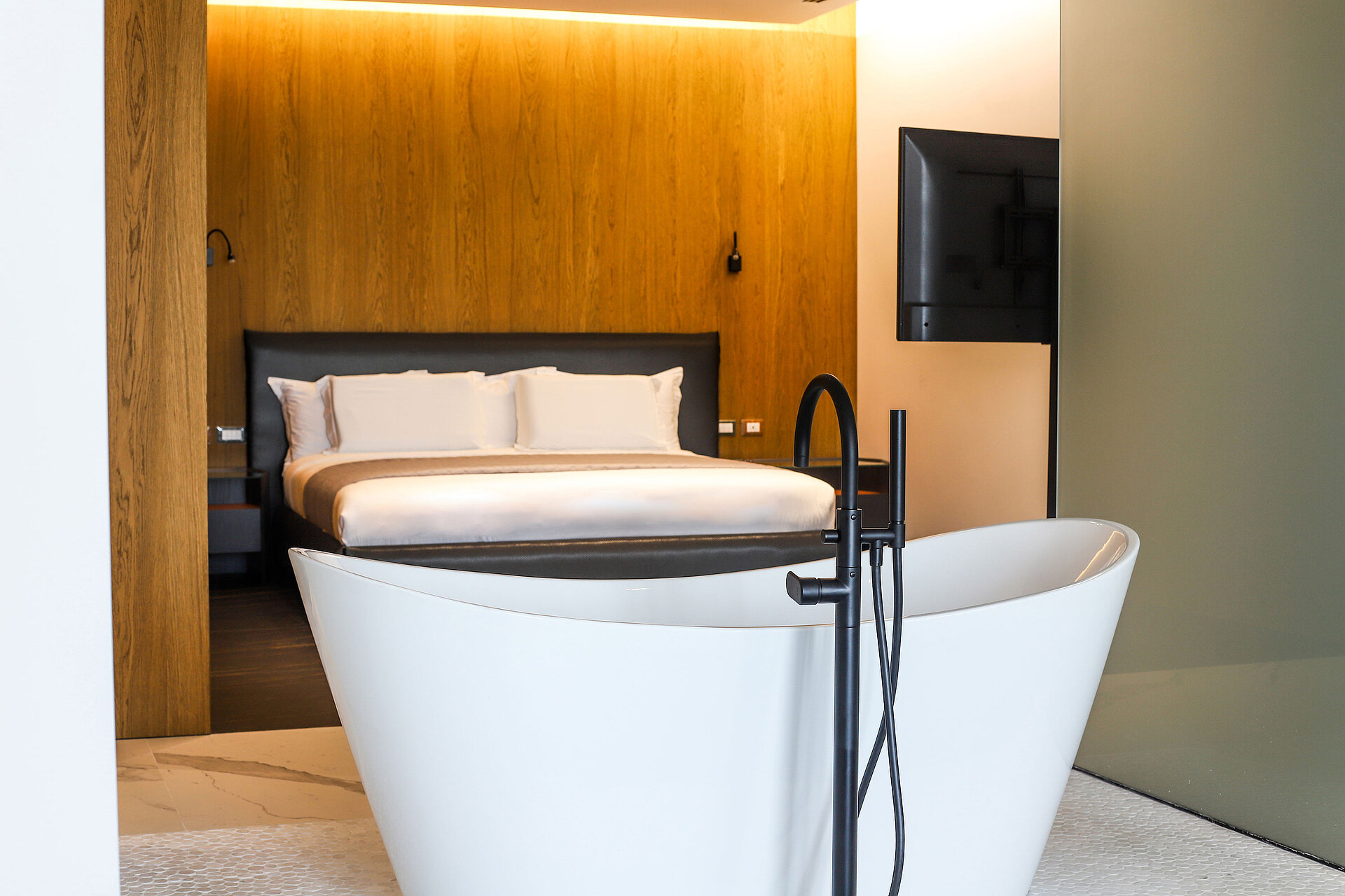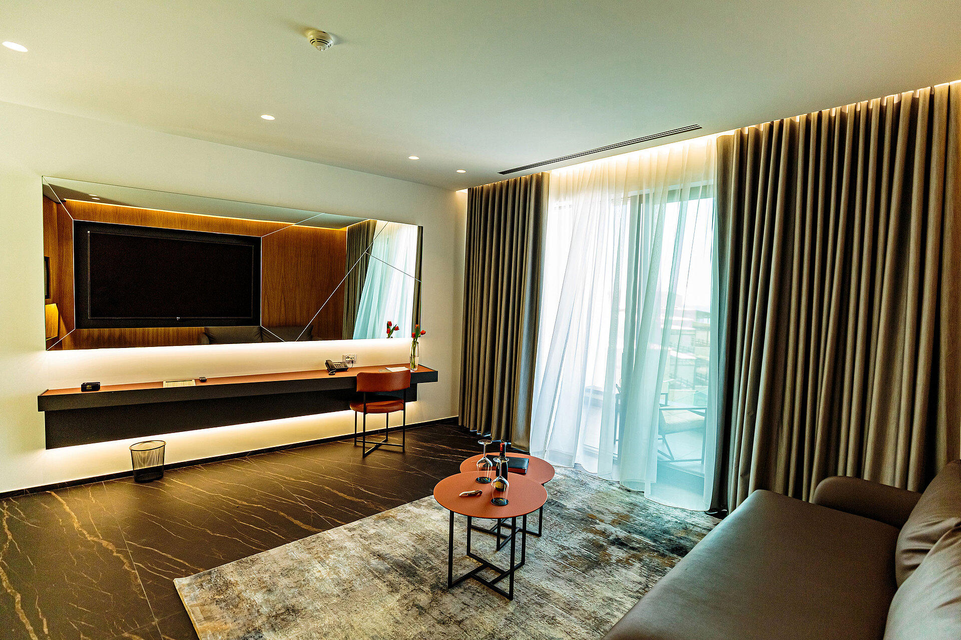 The resort has its own pebble beach, which you use exclusively as a guest of the hotel. In addition, there are four pools, sophisticated restaurants and bars, a spa centre and many other highlights. In a total of 8 different suite categories, all those who strive for that certain something extra will find their ideal accommodation in Vlora. Each category is titled either "Standard" or "Deluxe". The distinction here lies in the location of the hotel room, as the Deluxe rooms are on higher floors and have a better view from the balcony.