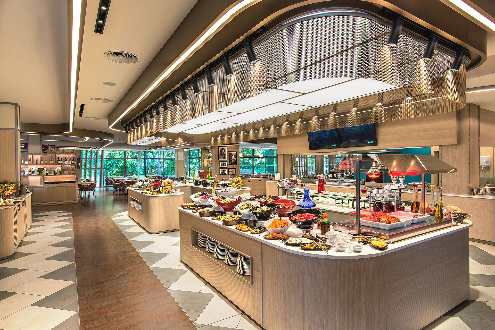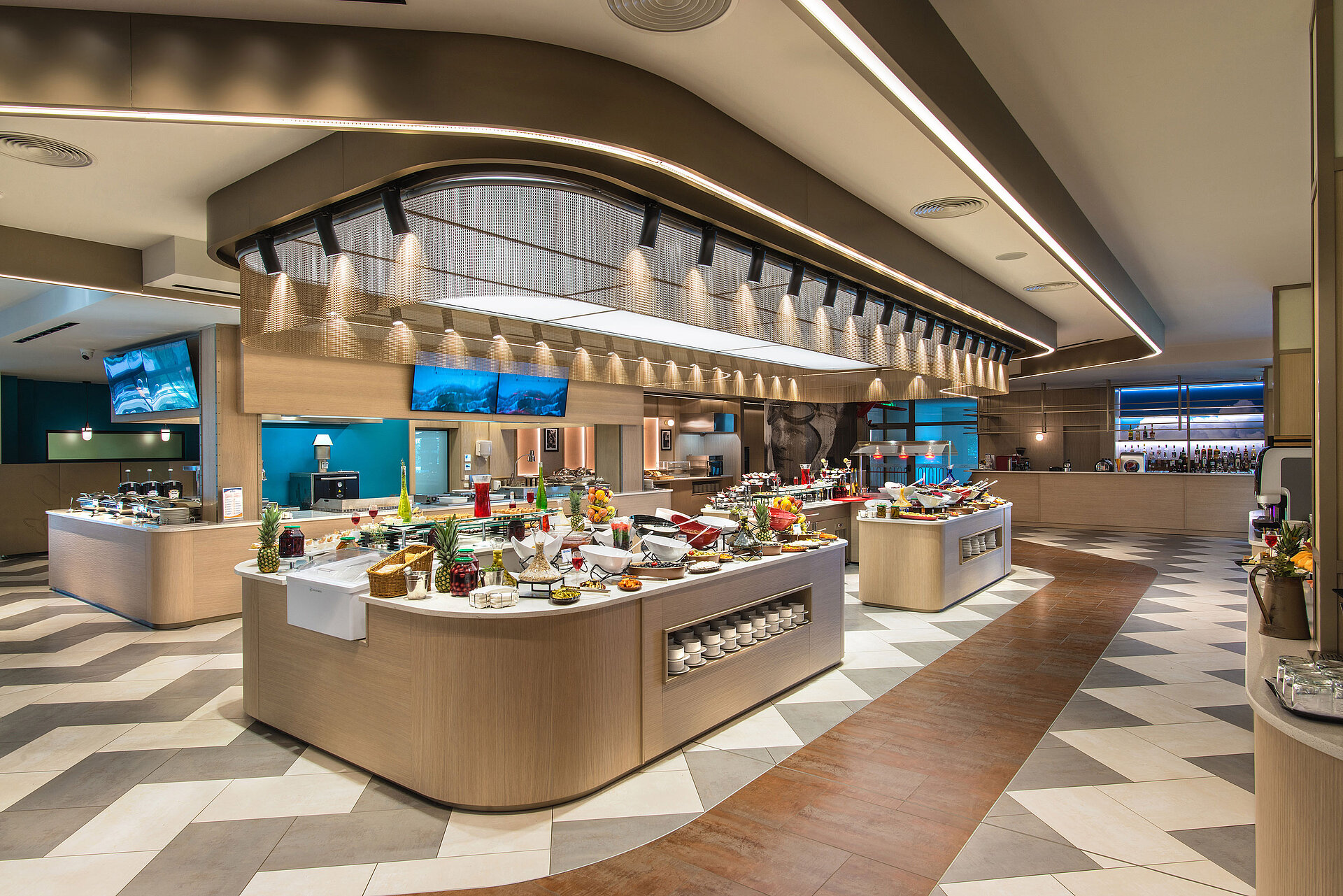 The buffet restaurant "Lady Lindy" welcomes you with an open terrace and show cooking station. Here you can help yourself to the rich breakfast buffet with a wide selection of food and drinks as well as vegetables and fruit from Albena's gardens. A late-riser breakfast is available until 11 a.m.. Lunch and dinner are also buffet style with a selection of fresh salads and soups as well as grill section with freshly prepared fish, meat, live cooking with a variety of dishes, pasta, desserts, fruits and ice-cream.