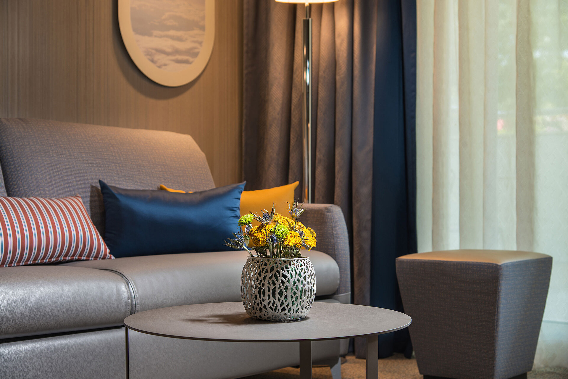 In the hotel itself, you have a total of 141 modern hotel rooms and suites at your disposal, whose design is inspired by the theme of aviation.