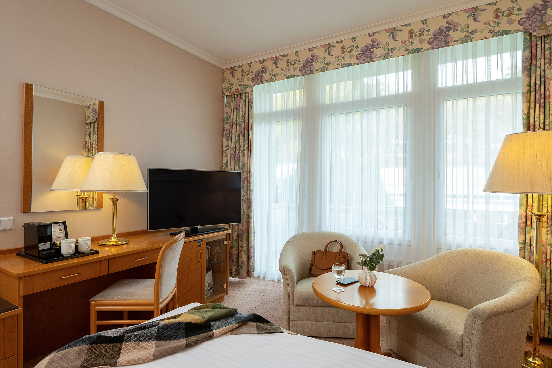 A showpiece of extraordinary spa architecture in the middle of greenery: that is the Maritim Hotel Bad Wildungen. Surrounded by Europe's largest spa park, the hotel is ideal for anyone looking for peace and relaxation. The hotel is also ideally located for an exploration trip, as it is within walking distance of the old town, which is well worth seeing. Other excursion destinations such as Lake Edersee in the district of Waldeck-Frankenberg, 17 km away, the small town of Fritzlar or Kassel, the only major city in northern Hesse, are quickly reached. We will be happy to put together appropriate excursion packages for you from the hotel, also for group travellers and event participants. Conferences, seminars and celebrations can be held in the peaceful atmosphere of the hotel and the green, surrounding nature allows creative ideas to bubble forth.