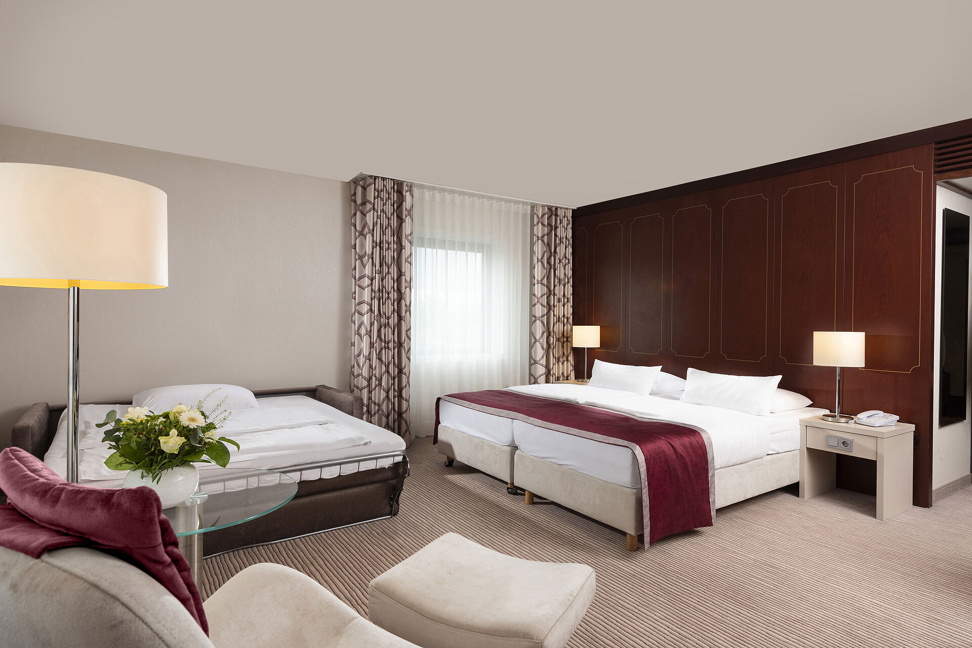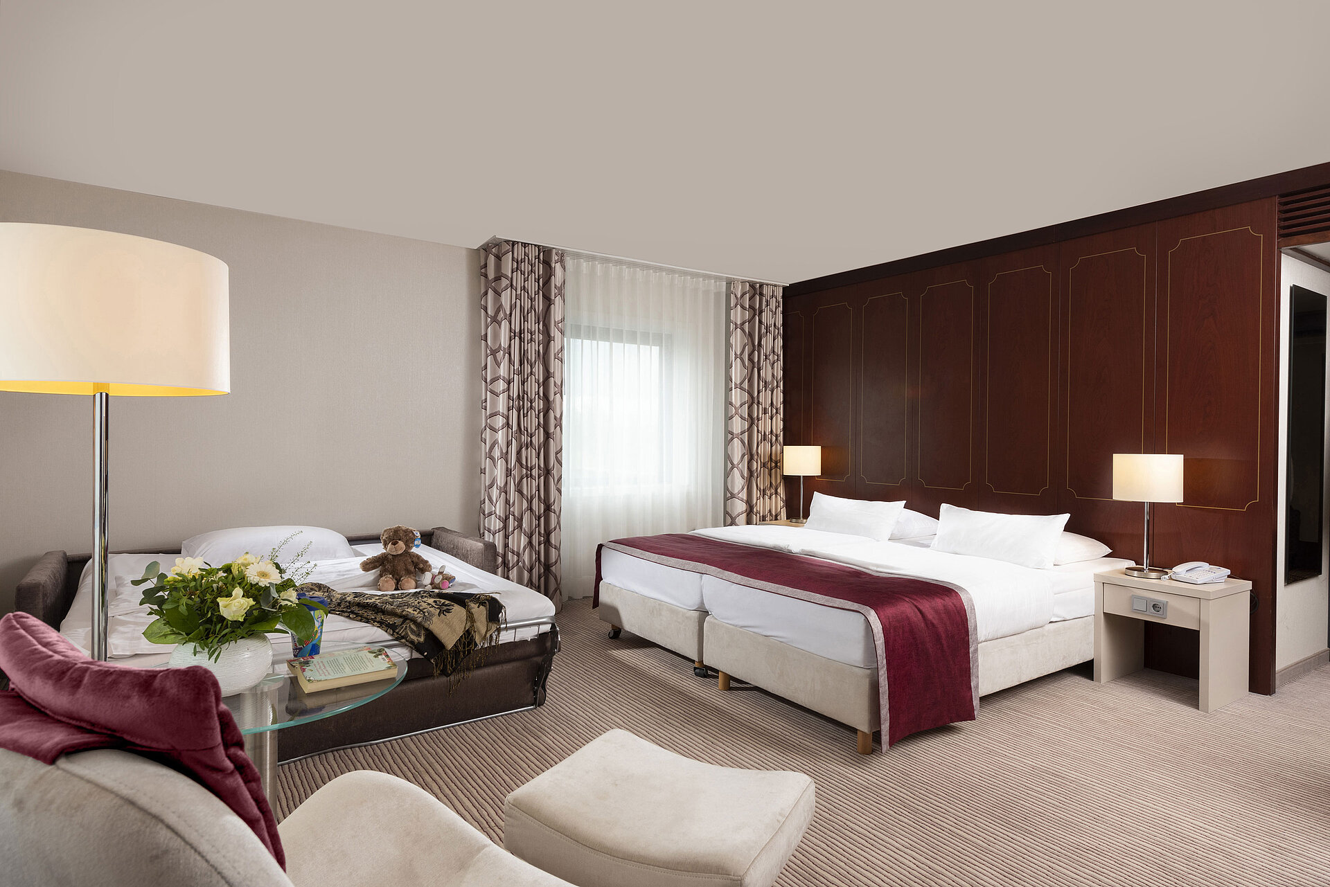 The Maritim Hotel Bonn has a total of 410 rooms and suites, spread over 6 floors of the hotel. Each room has a mini fridge or minibar and a safe for the safekeeping of your personal belongings.
