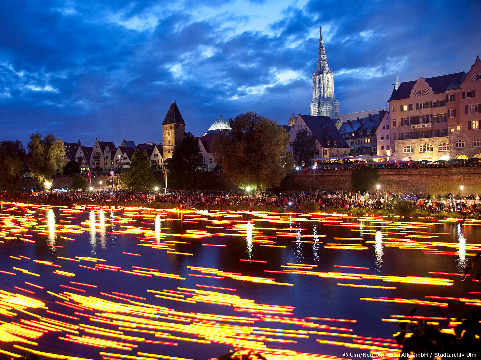 At the Nabada (which means "swimming down the river" in local dialect), 30 river ferries and boats parade downstream, bearing creative and painstakingly produced caricatures of high-ranking politicians or local current events. They are joined by thousands of locals in sometimes foolhardy home-made constructions, which "swim down" the Danube. From 3 p.m. at the latest until far into the night, the whole of Ulm is out and about, celebrating all over the city with music and a great variety of gastronomic delights.