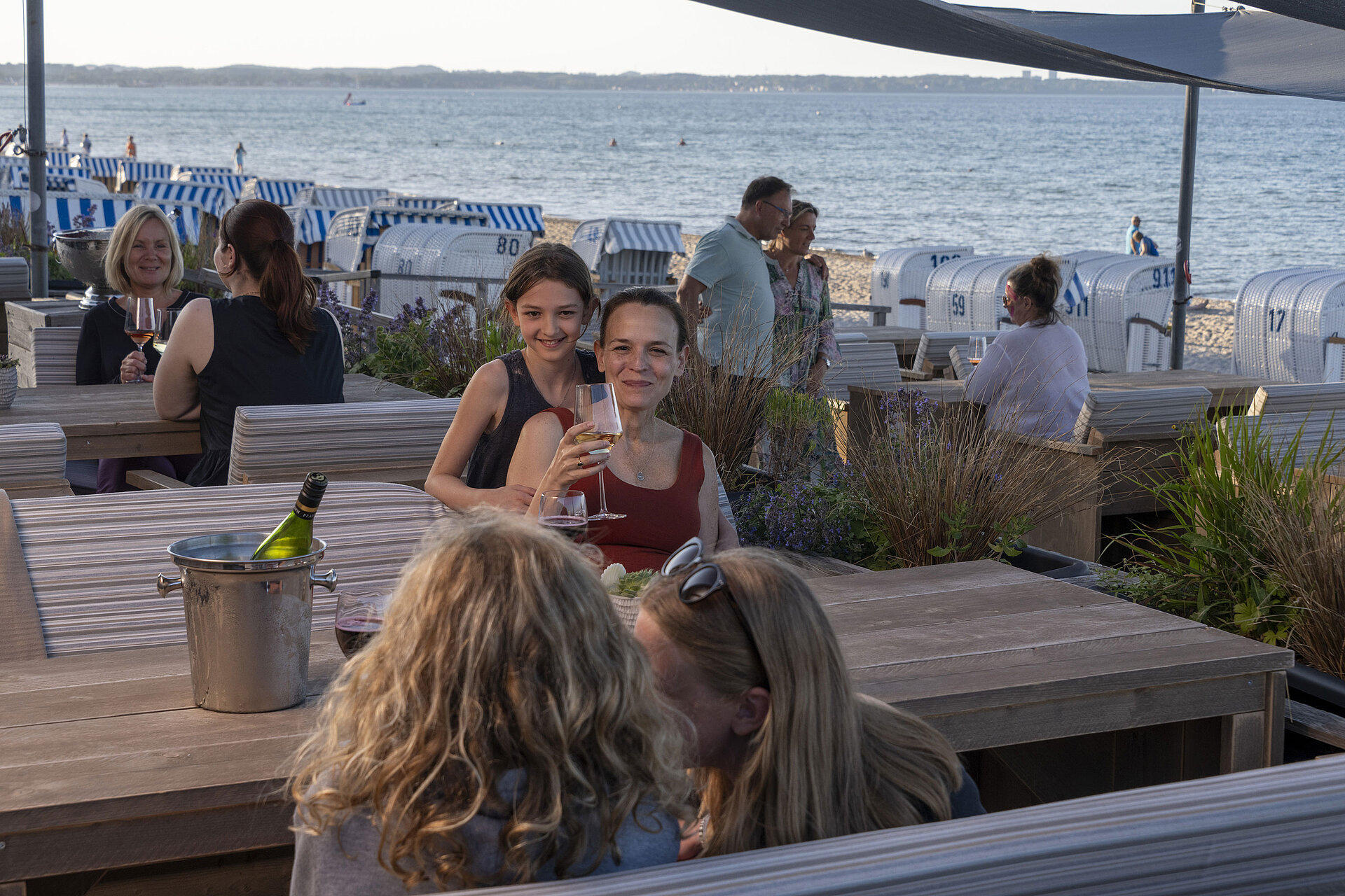 Here you can relax, take a seat on the terrace and watch the colourful hustle and bustle on the beach. Cosy blankets keep you warm even on not-so-warm days - for those who prefer to be outside. With a trendy mixed drink and a view of the Baltic Sea, it's a wonderful place to enjoy yourself.