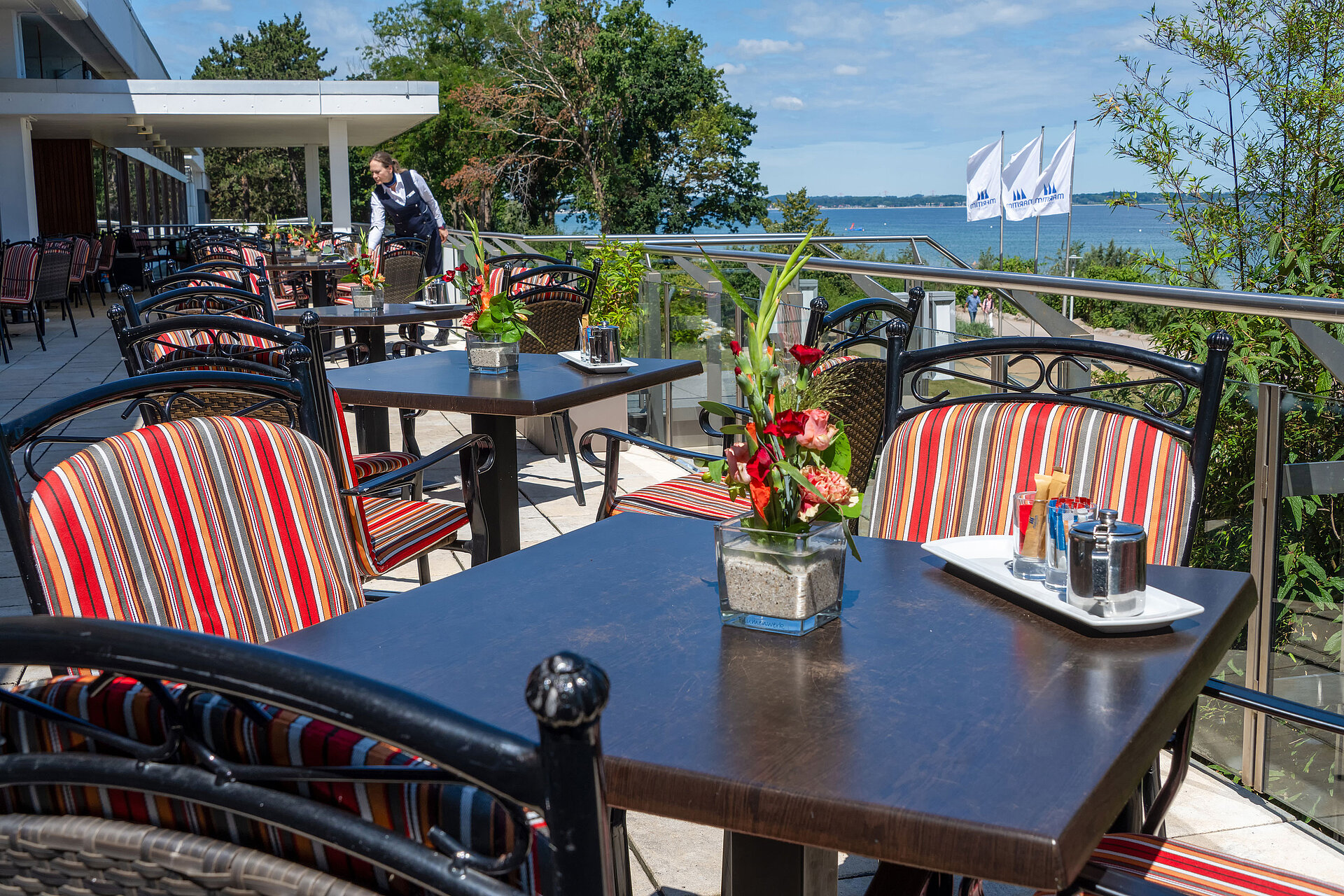 Our Sea Terrace restaurant with a unique view of the Baltic Sea, offers a successful mix of delicious fresh products, friendly and competent service staff and an elegant ambiance. Whether breakfast, homemade cakes and tarts in the afternoon or dinner in the evening, the team of the Seeterrassen-Restaurant is looking forward to your visit.