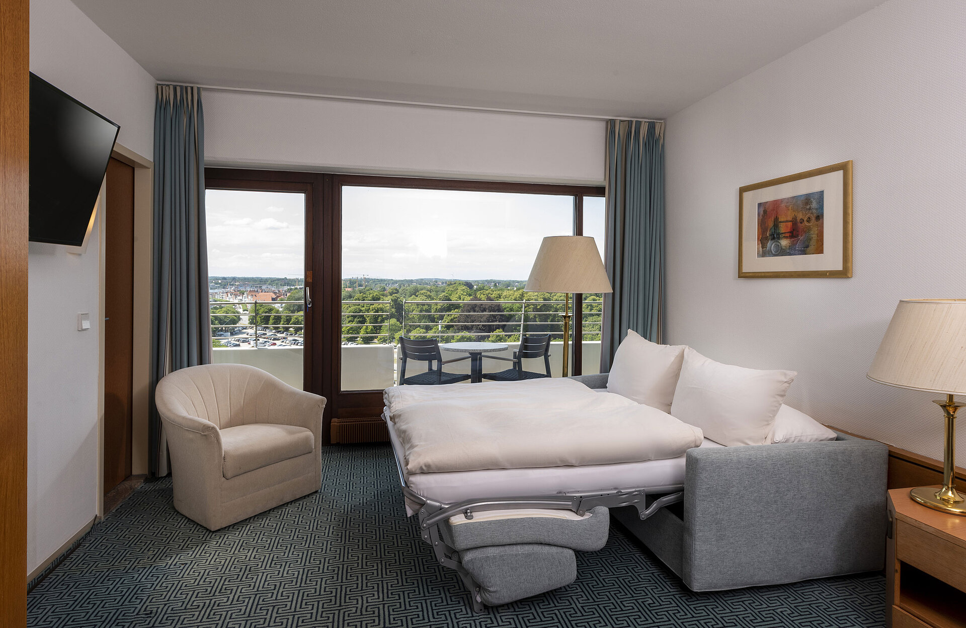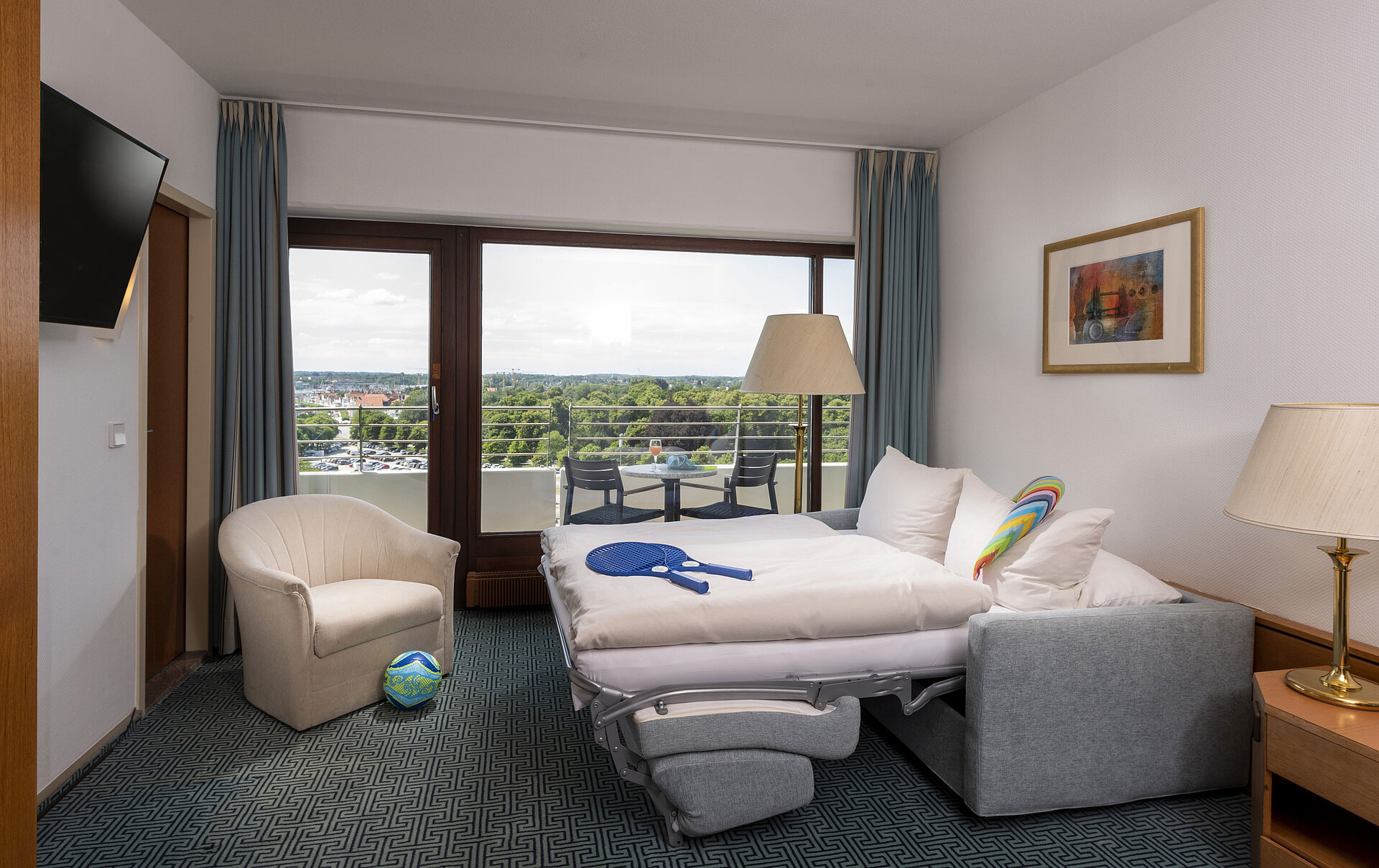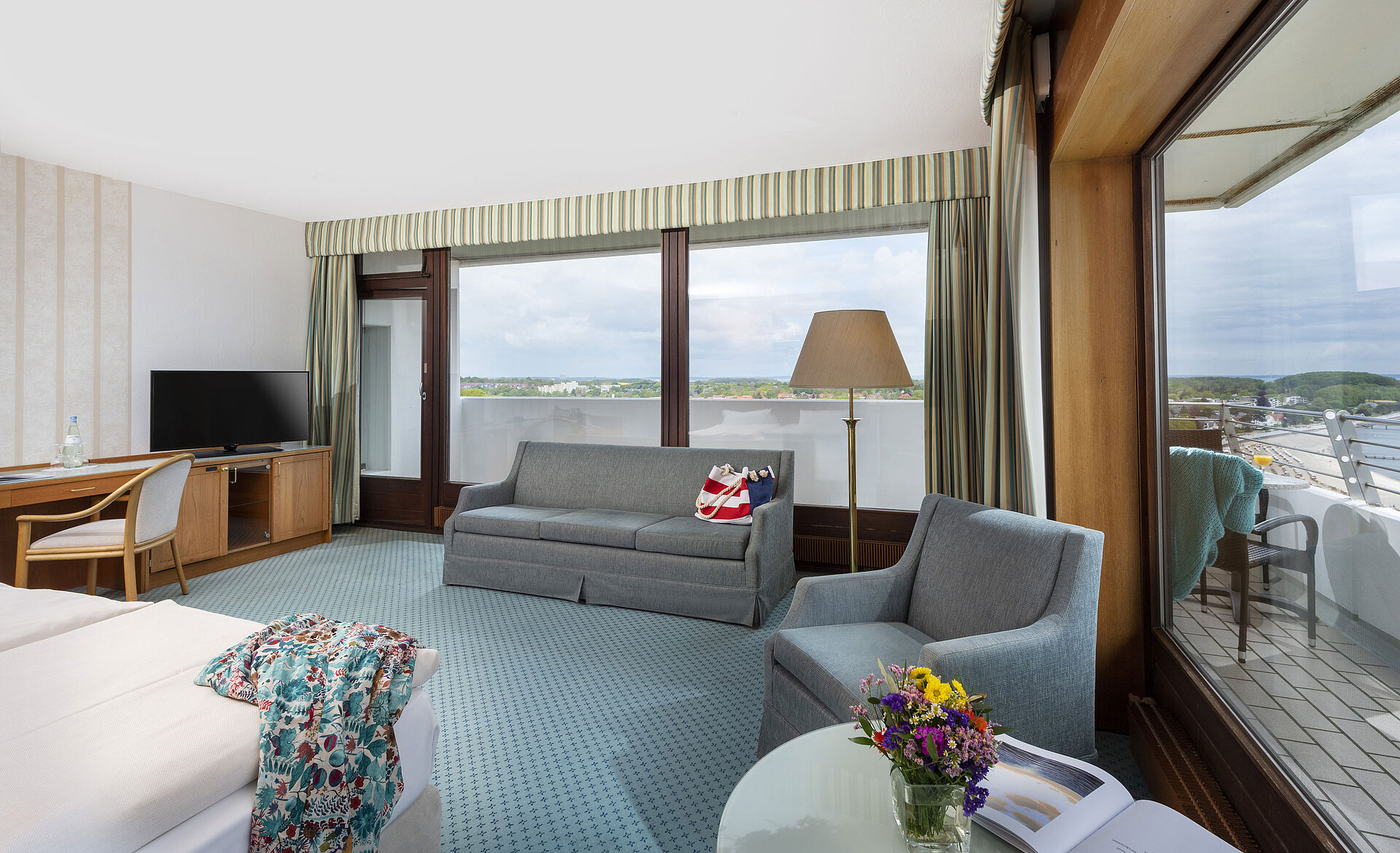 Are you looking for a hotel for your holiday in Travemünde? Then you have come to the right place. The Maritim Strandhotel Travemünde in Schleswig-Holstein is no ordinary hotel on the Baltic Sea – it is a landmark on the Bay of Lübeck and home to Europe’s tallest lighthouse, standing at an impressive 117 metres. The wide, fine sandy beach begins right outside the door of the Maritim Strandhotel and offers space for leisure activities and relaxation for guests of all ages. All 232 rooms are bright, spacious and feature a private balcony – perfect conditions for a restful seaside stay. Let yourself be inspired by the maritime hustle and bustle as large freighters and elegant cruise ships pass through the Trave estuary. A particular highlight: our restaurant with sea view, where you can enjoy regional and international cuisine in an elegant setting.