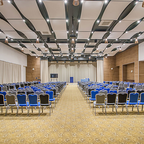 The Saal Sea (Sea Hall) is the centrepiece of the conference facilities at the Maritim Hotel Paradise Blue Albena. It gets its name from its unique ceiling design, which is inspired by the gentle waves of the sea. The 409 sq.m. space can be divided into three separate rooms, giving you the flexibility to tailor it to your specific requirements for all kinds of events – from business meetings, corporate events, presentations, conferences and conventions to gala dinners, festivals, weddings, anniversaries and birthdays. With state-of-the-art projection screens, laser projectors, professional audiovisual equipment and a stage with lighting, we can help you make your event a truly special experience.
